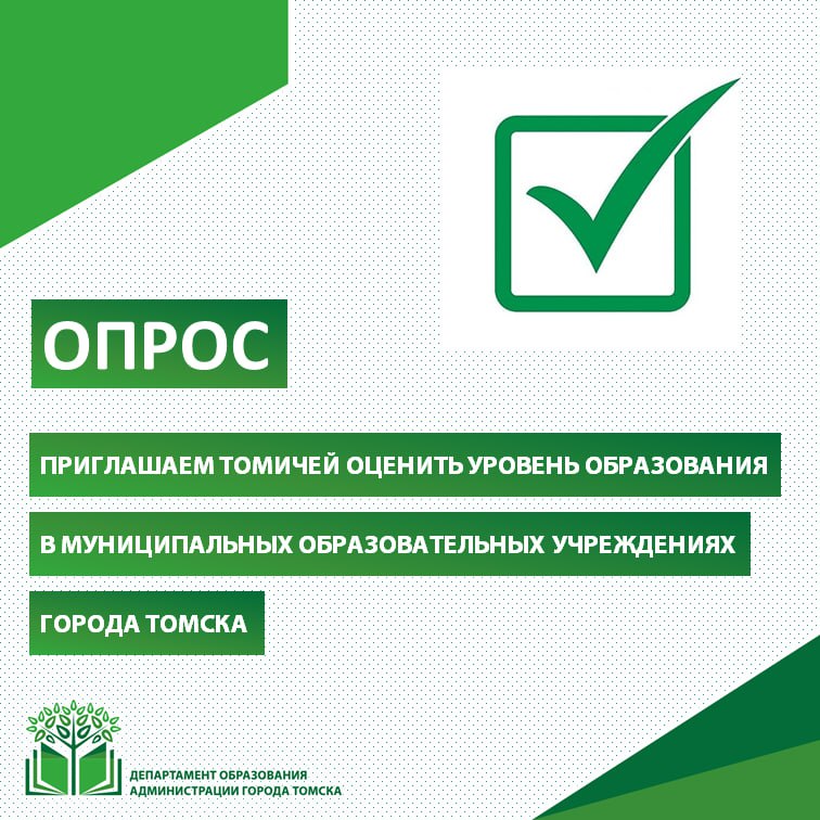 Цель опроса – выяснить мнение томичей об уровне общего образования (дошкольного, начального, основного общего, среднего общего), получаемого обучающимися в муниципальных учреждениях дошкольного и общего образования города Томска.